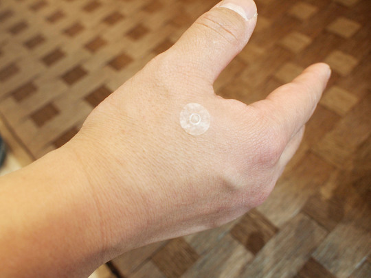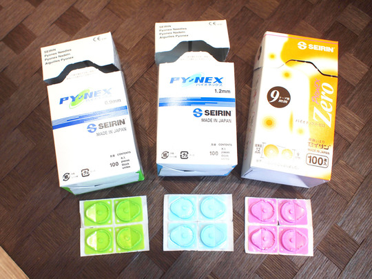 主に、置き鍼、シール鍼などと呼ばれています。丸いシールの上に小さな鍼(1.0mmくらい)が付いていて、そのシールを数個肌に直接貼ることにより、日常生活つねに鍼の刺激を得ることができます。
