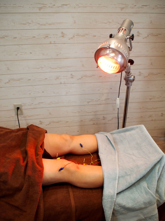 鍼や灸を用いて、ツボや硬くなっている筋肉を刺激を与える。